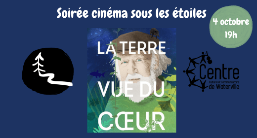 Les comités Cinéma et Accès-Nature, du Centre culturel et communautaire de Waterville, vous invitent à la projection extérieur du documentaire ''La terre vue du cœur'', de Iolande Cadrin-Rossignol, ce samedi 4 octobre à 19h, en arrière du Centre.